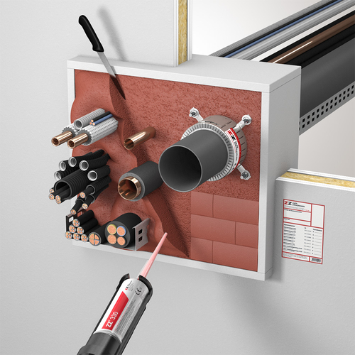 • In areas with a high number of penetrating elements, ZZ® 230 Fire Protection Block can be used for closure.